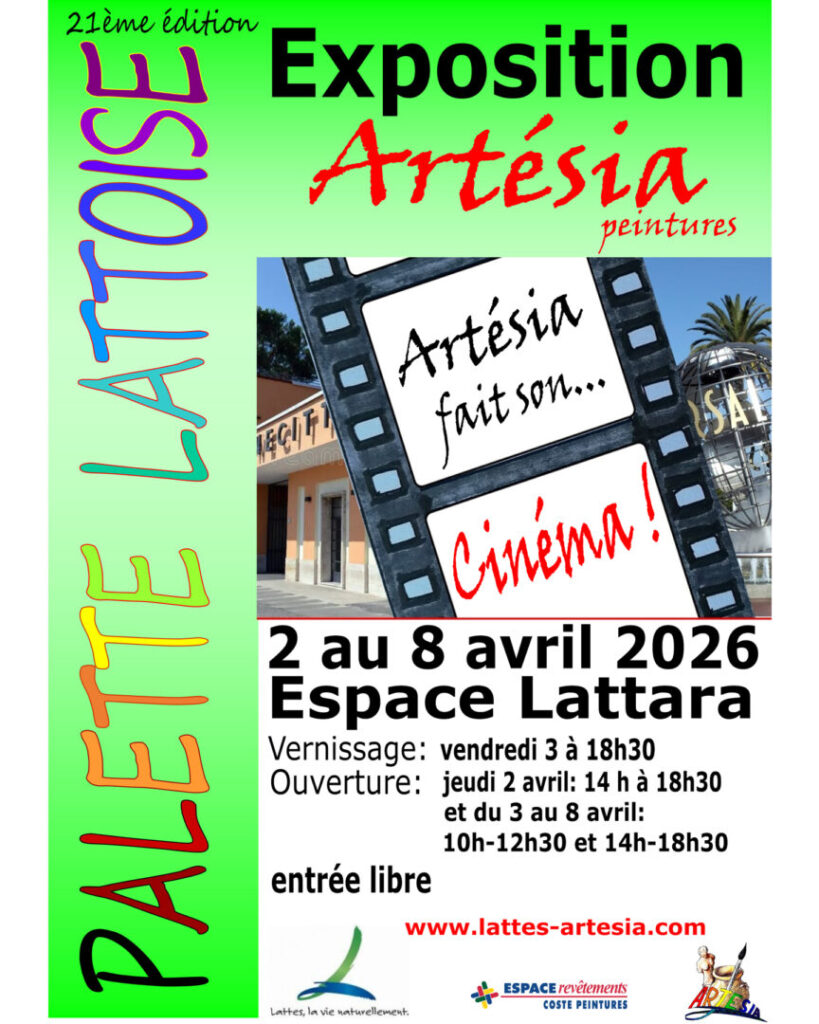 La Palette Lattoise et l’association Artésia vous invitent à leur 21ème exposition annuelle de peintures. Cette nouvelle édition met le septième art à l’honneur avec le thème « Artésia fait son Cinéma ! ». Venez découvrir les créations originales des artistes locaux.