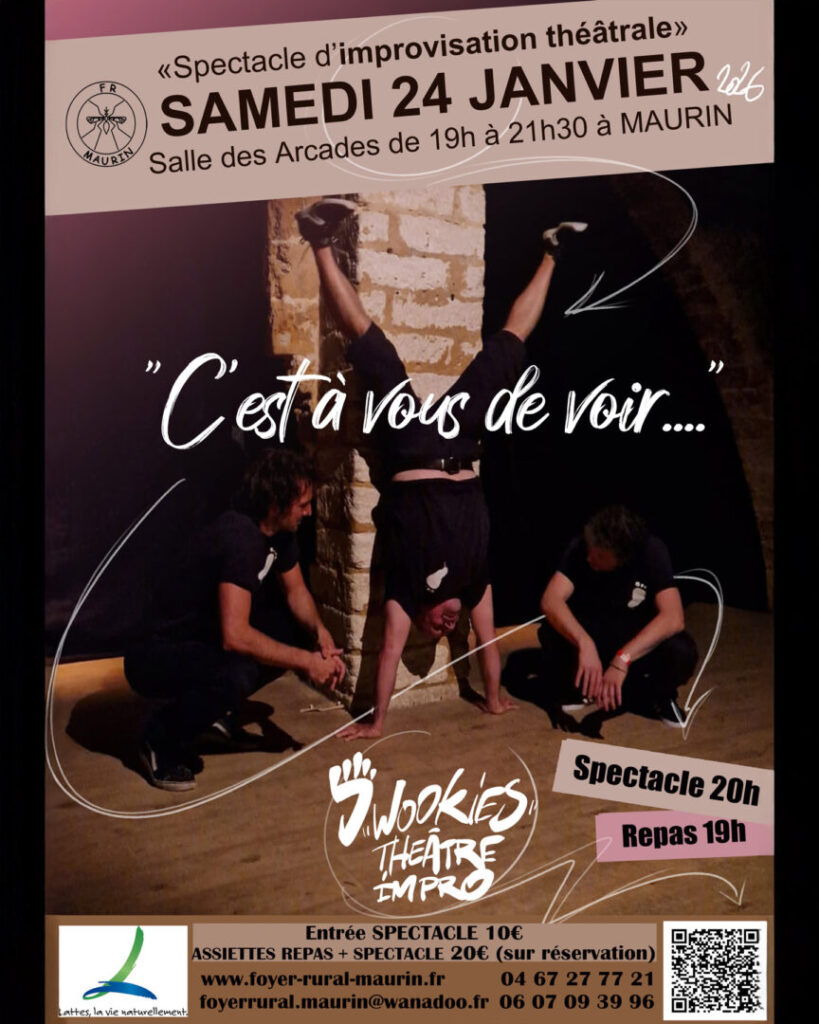 Le Foyer Rural de Maurin vous invite à une soirée placée sous le signe de l’humour et de la spontanéité. La troupe des « Wookies » investit la Salle des Arcades pour son spectacle d’improvisation théâtrale intitulé « C’est à vous de voir… ».