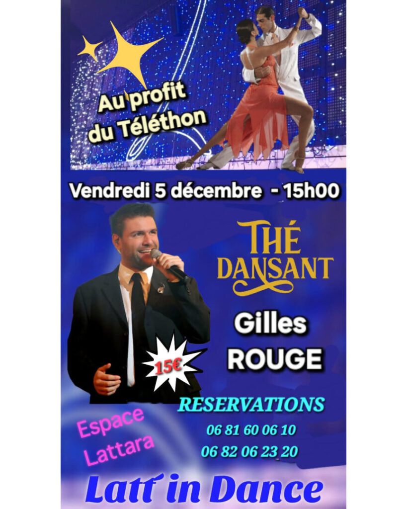 Venez profiter d’un thé dansant animé par le chanteur Gilles Rouge. Que vous soyez amateur de danse de salon ou simplement mélomane, cet événement est l’occasion idéale de se divertir tout en contribuant à une noble cause. L’intégralité des bénéfices sera reversée au Téléthon.