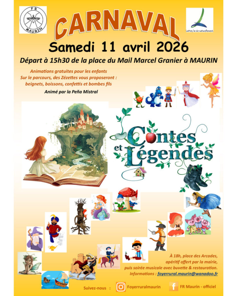 Le grand Carnaval de la commune de Lattes approche ! Le Foyer Rural (FR Maurin) vous donne rendez-vous le samedi 11 avril 2026 pour célébrer cet événement festif incontournable. Cette année, le défilé vous invite à plonger dans l’univers magique et fantastique des « Contes et Légendes ».