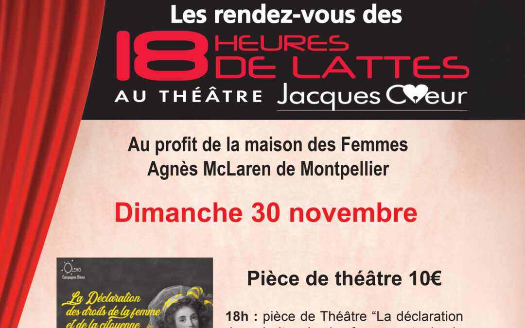 L’événement « Les 18 Heures de Lattes » vous invite au Théâtre Jacques Cœur pour une manifestation de soutien à la Maison des Femmes Agnès McLaren de Montpellier.