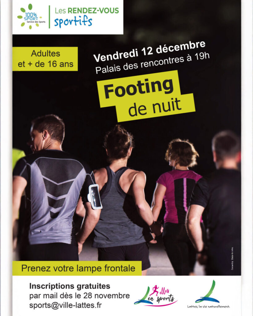 Description complète : Envie de bouger et de découvrir Lattes sous un autre angle ? La Ville de Lattes et le Service des Sports organisent une nouvelle édition du Footing de nuit.