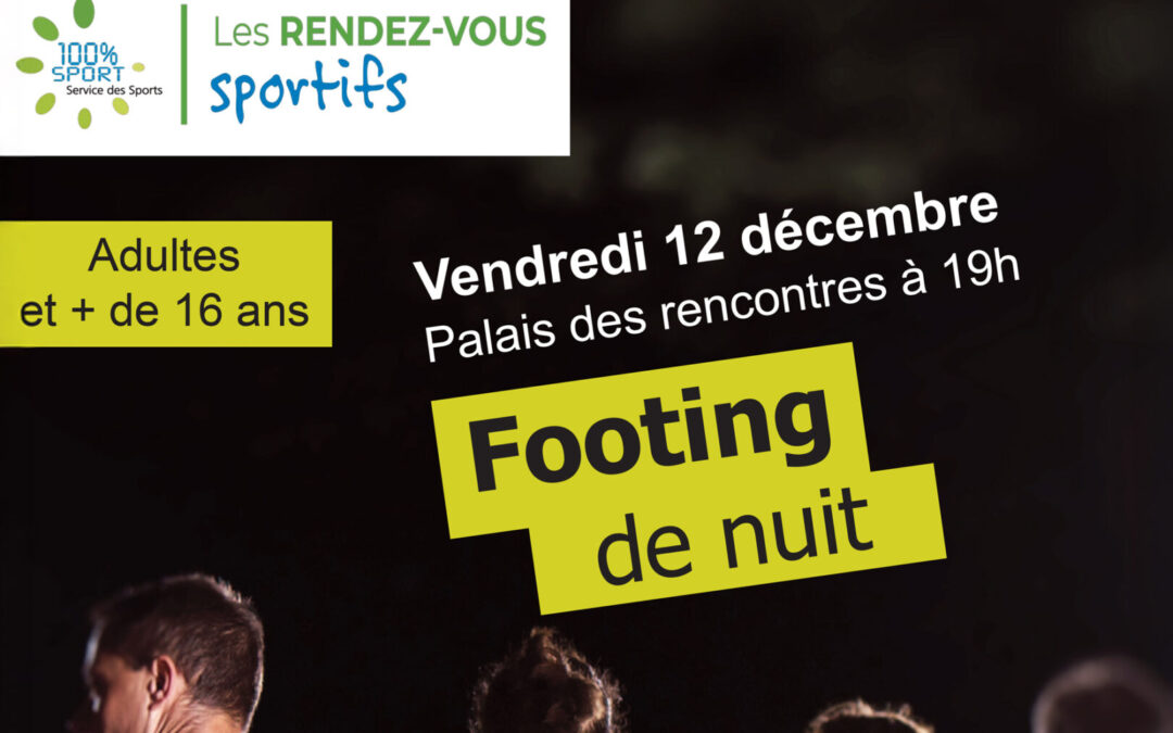 Dans le cadre des « Rendez-vous sportifs », le Service des Sports vous invite à un footing nocturne convivial. Chaussez vos baskets et n’oubliez pas votre lampe frontale !